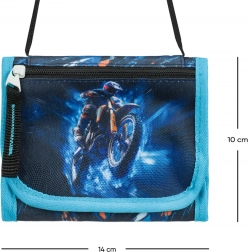Táto ľahká a kompaktná peňaženka na krk s atraktívnym motorkárskym dizajnom je ideálna pre deti aj teenagerov. Odolné textilné prevedenie zvládne každodenné používanie a chráni obsah pri ceste do školy, na krúžky aj výlety.