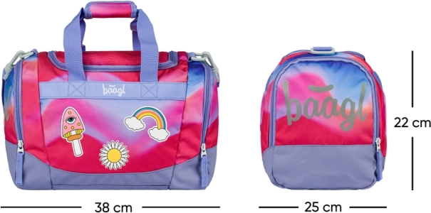 Ľahká a štýlová detská športová taška BAAGL v motíve dúhy je ideálna na krúžky, telesnú výchovu aj ako príručná batožina. Ponúka priestrannú hlavnú komoru so širokým vekom, samostatné vrecko na obuv, odnímateľný nastaviteľný popruh a spevnené vodoodolné dno. O hladké otváranie sa starajú spoľahlivé zipsy YKK a nechýbajú reflexné prvky pre bezpečnosť.