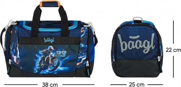 Ľahká a praktická detská športová taška BAAGL s motívom motorky je ideálna na krúžky, tréningy aj ako príručná batožina. Ponúka priestrannú hlavnú komoru so širokým vekom pre jednoduché balenie, samostatné vrecko na obuv, odnímateľný nastaviteľný popruh na nosenie cez rameno a spevnené vodeodolné dno. O plynulý chod sa starajú spoľahlivé zipsy YKK a reflexné prvky zvyšujú bezpečnosť detí za šera.