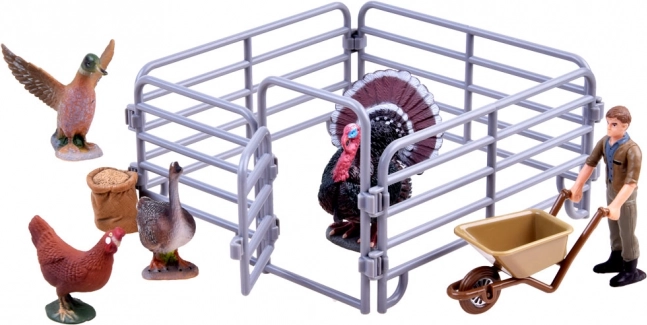 Súčasťou balenia je morka, kohút, hus, kačka, farmár s fúrikom, kŕmidlo a prvky ohrady, vďaka ktorým si deti ľahko vytvoria vlastnú mini farmu a môžu prehrávať každodenné činnosti, kŕmenie aj starostlivosť o zvieratá.