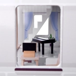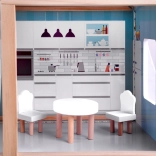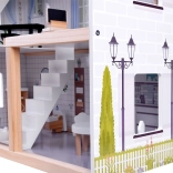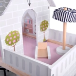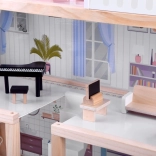 Domček je vybavený LED pásikom pre príjemné ambientné svetlo v každej miestnosti. Otvorená konštrukcia, okná a dekorovaná fasáda s kvetmi a lampami dodávajú realistický ráz. Súčasťou balenia je široká škála dreveného nábytku: od jedálenského stola, kresielok a sedačky, cez kúpeľňové vybavenie, až po čierny klavír s taburetom a ležadlo so slnečníkom na terasu.