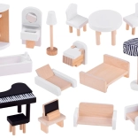 V balení nájdete stôl, stoličky, vaňu, sprchu, toaletný stolík, WC, sedačku, kreslo, konferenčný stolík, TV, klavír s taburetom, posteľ, lampu, ležadlo, slnečník a ďalšie.