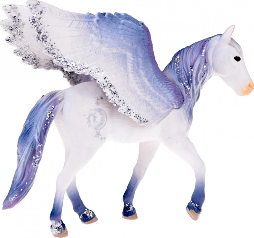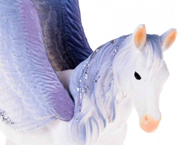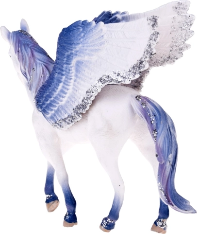 Objavte kúzlo fantázie s touto detailne spracovanou figúrkou pegaza, ktorá očarí deti aj zberateľov. Je vyrobená z odolného plastu, je ručne maľovaná a zdobia ju trblietavé detaily v bielej a modrej farbe so striebornými akcentmi. Perfektná na hranie aj zbieranie, rozvíja predstavivosť, kreativitu a jemnú motoriku.