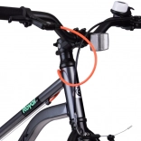 - Stabilné riadidlá: Široko a ergonomicky navrhnuté, zaručujú plnú kontrolu nad bicyklom. Krátka hrudná kosť zlepšuje manévrovateľnosť a mäkké, odolné gumové rukoväte poskytujú bezpečný úchop a pohodlie pri jazde.