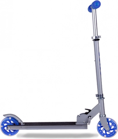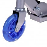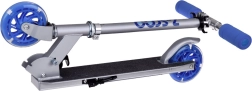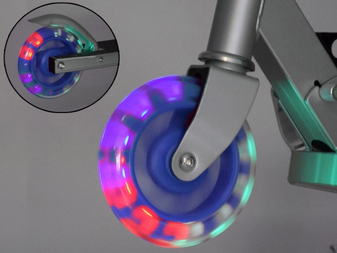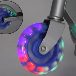 Táto detská kolobežka kombinuje ľahkosť, skladaciu konštrukciu a bezpečné prevedenie. Svietiace LED kolesá zvyšujú viditeľnosť a atraktivitu pri jazde, bez potreby batérií – diódy sú napájané energiou generovanou počas otáčania kolies.