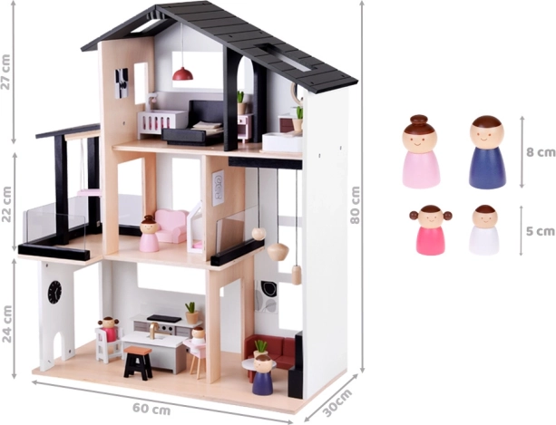 Hľadáte dokonalý domček pre bábiky, ktorý rozvíja kreativitu vašich detí? Tento moderný drevený domček v štýle Loft je tým pravým riešením. Vyrobený z kvalitného dreva s dôrazom na detail, domček zahŕňa nielen elegantnú obývačku, modernú kuchyňu a útulnú spálňu, ale aj funkčnú kúpeľňu a balkón.