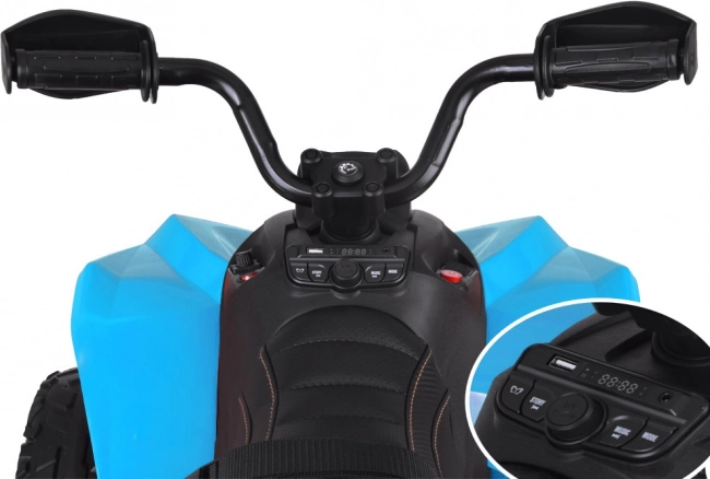Ovládanie je jednoduché: štart prebieha tlačidlom, rozjazd je plynulý a po uvoľnení pedála sa aktivuje elektrická brzda. Na prehľadnom paneli prepnete vpred/stop/vzad a samostatne ovládate osvetlenie. Integrovaný hudobný modul ponúka predinštalované melódie, USB, MP3 aj FM rádio, takže si malý jazdec môže užiť jazdu s obľúbenou hudbou.