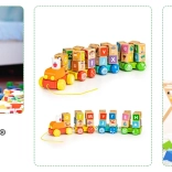 Vlak obsahuje 26 drevených kociek označených veľkými a malými písmenami abecedy a rôznymi obrázkami. Deti môžu z kociek zostavovať jednoduché slová, stavať veže alebo ich umiestniť na vagóny, a keď sa vlakom pohne, kocky sa začnú otáčať okolo svojej osi, čo iste upúta pozornosť každého dieťaťa.