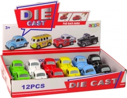 Resoráky s trecím pohonom vo verzii osobného auta Chrobák zaručujú skvelú zábavu pre všetkých malých automobilových nadšencov. Vďaka ich gumeným pneumatikám a robustnej konštrukcii sú nielen estetické, ale aj trvácne. Každé autíčko sa predáva samostatne a je ideálne ako malý darček alebo odmena. V balení nájdete až 12 kusov, čo je ideálne na rôzne akcie či oslavy.