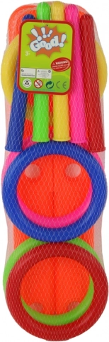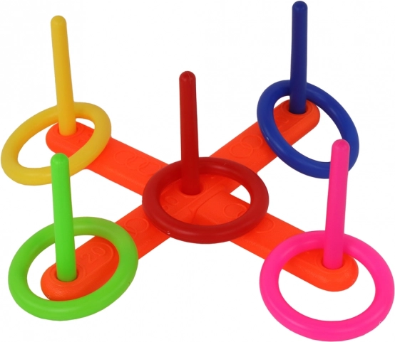 Táto vzrušujúca hra prináša nielen zábavu, ale taktiež pomáha deťom zlepšiť ich zručnosti. Sada obsahuje päť farebných krúžkov a pevný základ s piatimi kolíkmi v rôznych farbách.