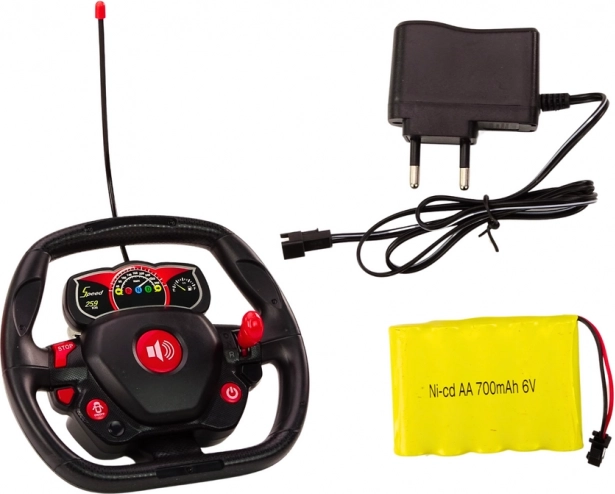 Diaľkové ovládanie pomocou 27HZ diaľkového ovládača v tvare volantu poskytuje nielen veľa zábavy, ale tiež umožňuje každému dieťaťu cítiť sa ako skutočný vodič, ktorý objavuje svet mimo dosahu.