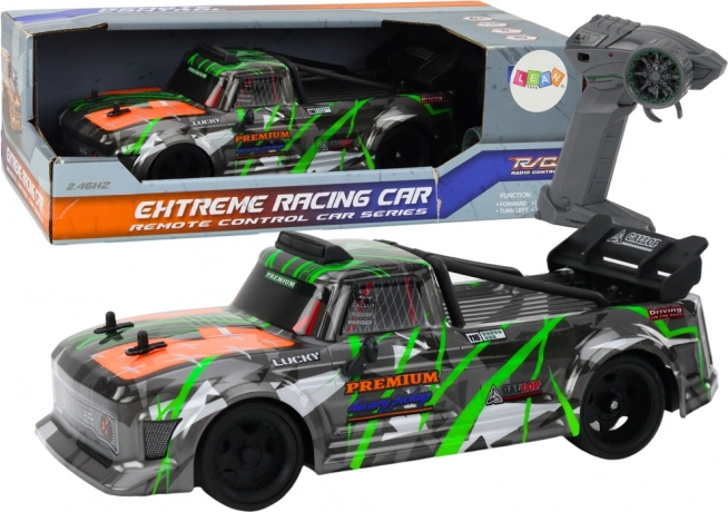 Užite si akčnú jazdu s RC autom v modernej šedo‑zelenej farbe. Športový dizajn a mierka 1:16 zaručujú autentické dojmy, zatiaľ čo presné ovládanie umožní zvládnuť dynamické prejazdy aj efektné drifty. Tento model je skvelou voľbou pre začiatočníkov aj nadšencov rýchlej jazdy.