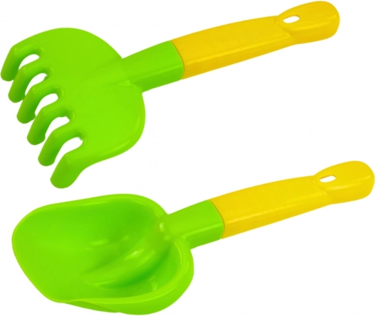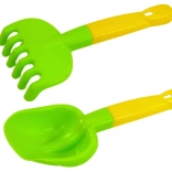 Sada obsahuje detskú lopatku a hrabličky s oblými hranami, ktoré sú ideálne pre malé ruky a bezpečné pre deti.