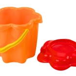 Vedierko je vybavené vekom v tvare kvetu, ktoré slúži ako sitko na piesok, čo pridáva ďalší rozmer pri pieskových hrách.