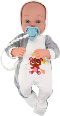 Súčasťou sady je tiež modrý cumlík na pletenej šnúrke a mäkká deka pre ešte väčšiu radosť z opatrovania. Hra s bábikou rozširuje fantáziu detí a učí ich, ako sa starať o bábätko, čím stimuluje ich sociálny vývoj.