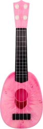 Ukulele pre deti je vybavené štyrmi nylonovými strunami, ktoré poskytujú mäkký dotyk príjemný pre detské prsty. Ružová farba a motív broskyne dodávajú nástrojom jedinečný vzhľad. Výroba z odolného plastu bezpečného pre deti zaručuje dlhú životnosť a ľahkosť. Tým je zaistené, že každé dieťa môže jednoducho ovládať tento nástroj a užívať si radosť z hudobného učenia.