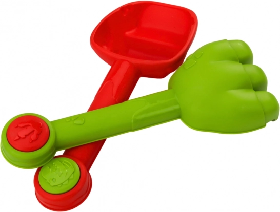 Súčasťou je aj lopatka a hrable na tvarovanie a modelovanie, kanvička v tvare dinosaura na vodné hry a dve formičky dinosaurov (napr. triceratops), ktoré podporia predstavivosť a jemnú motoriku. Sada je vhodná na pláž, k vode aj do pieskoviska a spĺňa bezpečnostné normy.