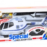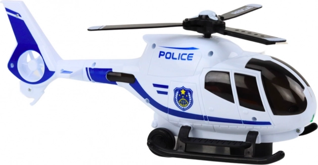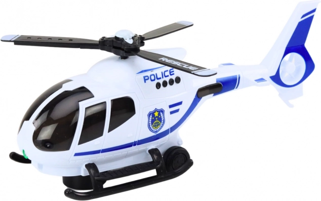 Tento plastový policajný vrtuľník v atraktívnych farbách je ideálny pre malých milovníkov akcie a záchranných misií. Vďaka rotujúcemu a svietiacemu rotoru, hudobným a zvukovým efektom a inteligentnému mechanizmu, ktorý mení smer pri náraze na prekážku, ponúka dlhé hodiny zábavy a podnecuje kreatívne hranie.
