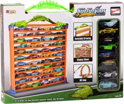 Tento šikovný set 2v1 kombinuje rýchlu závodnú akciu a praktické parkovanie. Postavte dráhu so slučkou 360° pre dynamické preteky a následne ju ľahko prestavajte na impozantnú garáž s 11 poschodiami na ukladanie celej zbierky autíčok. Vďaka jednoduchým spojom si deti dráhu poskladajú samy a zelené prvky po zložení vytvoria pevné madlo na ľahké prenášanie.