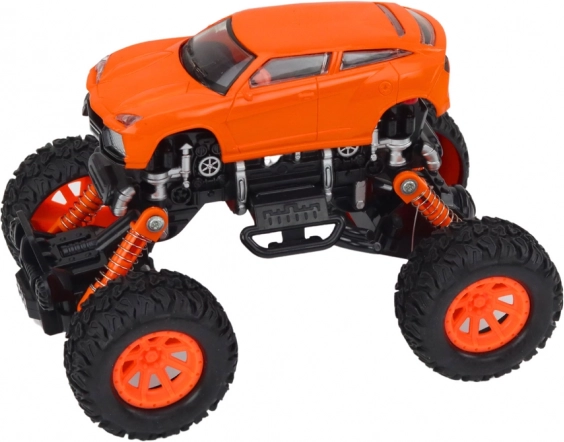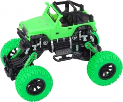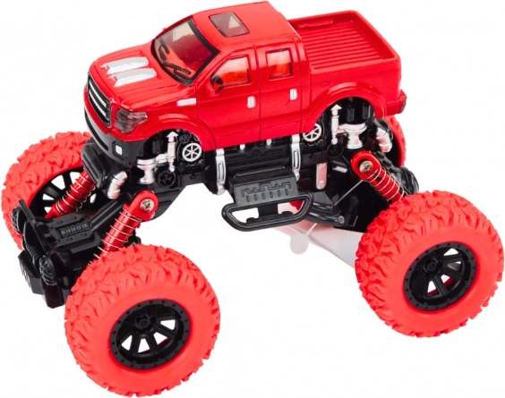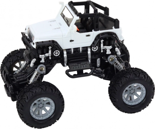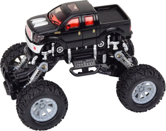 Terénne auto 4x4 je navrhnuté na akčnú hru v náročných podmienkach. Vysoké odpružené zavesenie a veľké, profilované kolesá umožňujú ľahko prechádzať cez prekážky, kamienky aj nerovný povrch. Realistické detaily, ako sú nárazníky a bočné prvky, dodávajú hračke vzhľad skutočného off-road vozidla.
