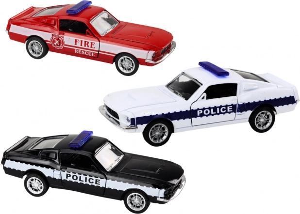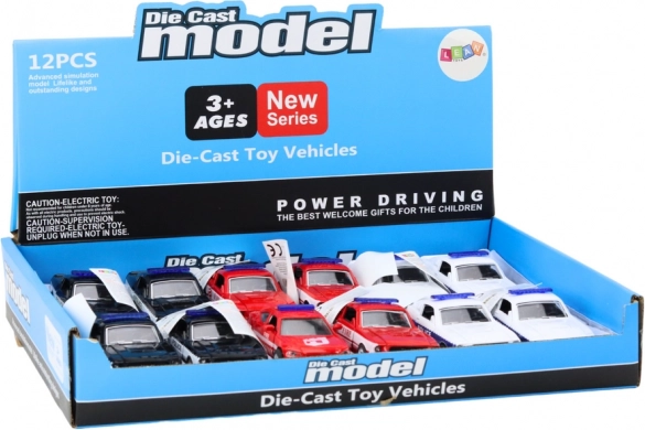 Vďaka kovovému telu sú modely pevné a odolné voči nárazom. Výrobok spĺňa bezpečnostné normy CE a EN 71, takže je vhodný pre deti od 3 rokov. V balení sa nachádza policajné alebo hasičské vozidlo (farby sú zasielané náhodne alebo na želanie: červená, biela, čierna).