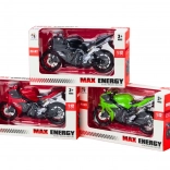 Realistický športový motocykel v mierke 1:12 poteší deti aj zberateľov. Ponúka detailné spracovanie, kovové diely a otáčacie riadidlá. Vďaka stojanu stabilne stojí na poličke, vybrať si môžete z červenej, zelenej alebo čiernej varianty. Vhodné od 3 rokov, certifikácia CE a zhoda s EN71.