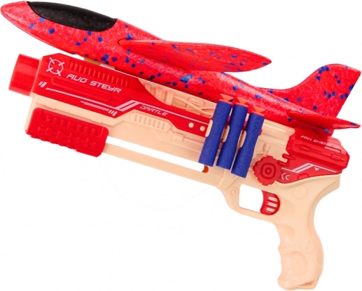 Pištoľ umožňuje vystreľovať penové náboje zakončené gumovou prísavkou, ktorá sa môže bezpečne prilepiť na rôzne povrchy. Je to skvelá zábava na tréning presnosti a precíznosti. K pištoli možno pripojiť špeciálne lietadlo, natiahnuť mechanizmus a vystreliť ho do vzduchu. Vďaka tejto funkcii si deti môžu užiť pohľad na letiace lietadlo, čo podnecuje predstavivosť a podporuje hru vonku.