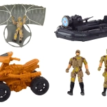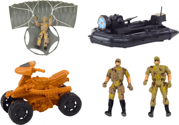 - Figúrky vojakov a parašutista – Pružné figúrky možno polohovať do rôznych pozícií, parašutista simuluje zoskoky.