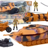 - Tank s pohyblivou vežou – 33 cm dlhý tank v maskovacom vzore s pohyblivou vežou a svetelnými efektmi.