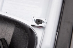 Čierne sedadlo s bezpečnostnými pásmi zaisťuje deťom bezpečnosť pri ich dobrodružstvách.