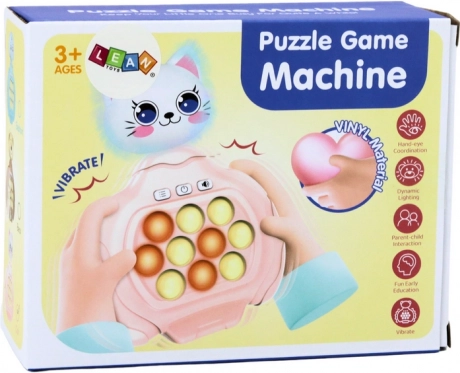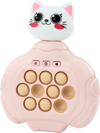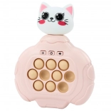 Pop-It hra s dizajnom mačky v ružovom prevedení je ideálna kombinácia pre detskú zábavu a rozvoj. Jej pastelové farby a roztomilý vzhľad okamžite zaujmú. Hra obsahuje efekty vibrácií a zvukov, ktoré povzbudzujú deti k hre.