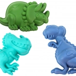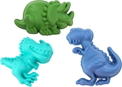 Štyri rôzne formičky v tvare dinosaurov inšpirujú k tvorbe scén a postáv z piesku a podporujú fantáziu.