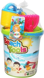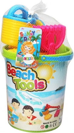 Farebná sada hračiek do piesku pre deti od 3 rokov ponúka všetko na kreatívnu hru na pláži aj v pieskovisku: veľké vedro s obrázkami, mlyn na piesok, lopatku, hrabličky, 3 formičky a kanvičku. Vyrobené z odolných a bezpečných materiálov, s jasnými farbami na rozvoj fantázie a motoriky. Spĺňa CE a normu EN71.
