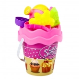 Objavte kúzelnú sadu na piesok s motívom sladkostí, ktorá rozžiari každú pláž aj pieskovisko. Ružové vedierko so sitkom na veku uľahčí oddeľovanie piesku a vody, farebná kanvička pomôže zvlhčiť piesok pre lepšie tvarovanie a praktická lopatka zjednoduší kopanie a plnenie. Štyri formičky vo veselých farbách nabádajú k tvoreniu zmrzlín, sušienok či ďalších pieskových dobrôt.