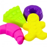Štyri výrazne farebné formičky v tvaroch ako donut, perníček či croissant premenia pieskovisko na pekáreň plnú fantázie.