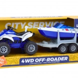 Policajná štvorkolka s prívesom na čln a motorový čln
