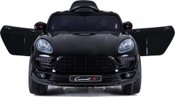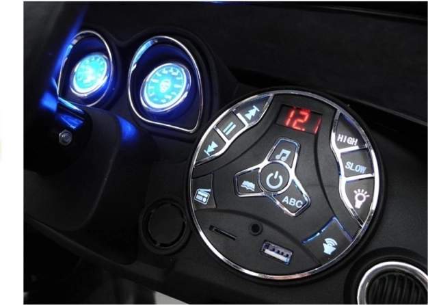 Vo vnútri auta nájdete mäkké čalúnené sedadlo, ktoré zaručuje pohodlie a bezpečnosť, zatiaľ čo dodaný diaľkový ovládač 2.4G umožňuje rodičovskú kontrolu nad autom. Karoséria vo výraznom čiernom odtieni je doplnená červenými akcentmi a efektnými LED svetlami, ktoré zvyšujú viditeľnosť a bezpečnosť na cestách.