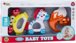 Sada hrkálok pre dojčatá je ideálnou voľbou pre najmenších, skladajúca sa z troch rozkošných hrkálok v podobe líšky, zebry a kraba. Každá hrkálka je navrhnutá v jasných, poutavých farbách, ktoré stimulujú zrak a záujem dieťaťa.