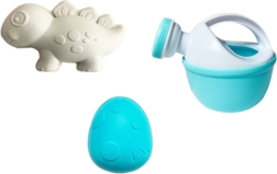 Krhlička uľahčí zalievanie a modelovanie mokrého piesku, zatiaľ čo tematické dinosaurie doplnky podporia fantáziu a príbehovú hru na pláži aj na záhrade.