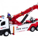 Žeriav je vybavený dvoma hákmi na navijakoch, ktoré možno presne spúšťať a zdvíhať pomocou otočných ovládačov. Konštrukcia s otáčaním 360° dáva deťom plnú kontrolu nad manipuláciou s nákladom. Blikajúce svetlá a realistické zvuky umocnia atmosféru zásahu či stavby.