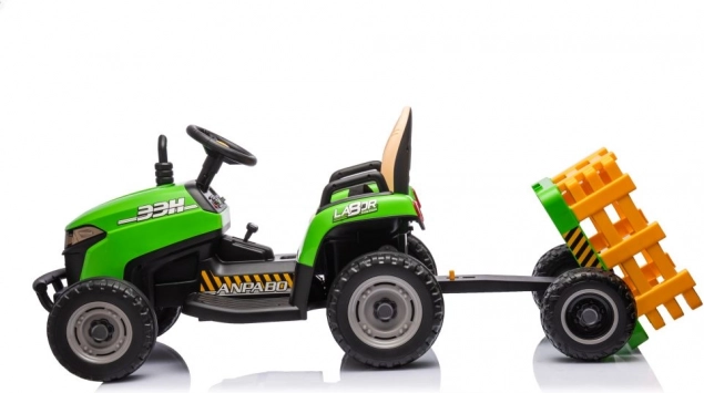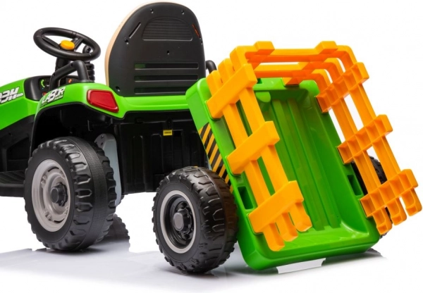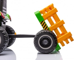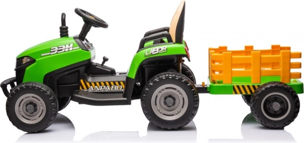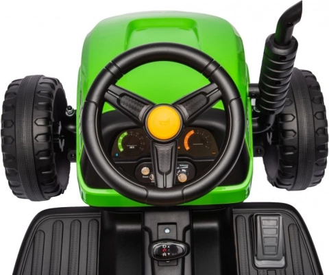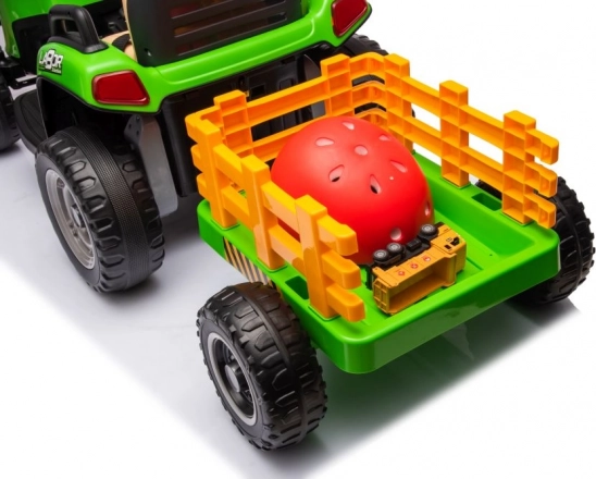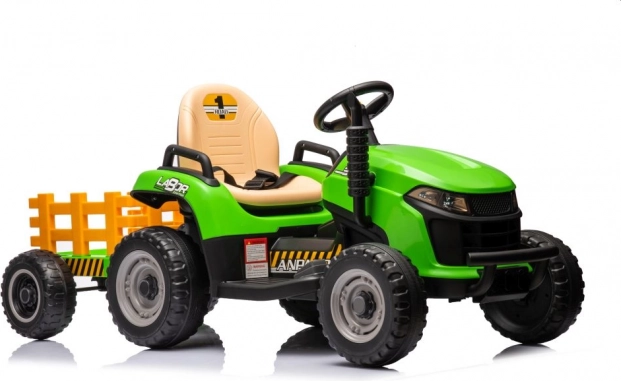 Zábavný a odolný elektrický detský traktor v zelenej farbe s odpojiteľným prívesom na prevážanie hračiek. Ponúka realistické riadenie, veľké kolesá na jazdu vonku a pohodlné sedadlo. Ideálny na aktívne hranie na záhrade aj dvore, podporuje fantáziu a motoriku. Vďaka stabilnej konštrukcii a jednoduchému ovládaniu je skvelou voľbou pre prvé „šoférske“ zážitky. Realistické detaily, robustné prevedenie a zábava na dlhé hodiny.