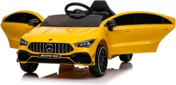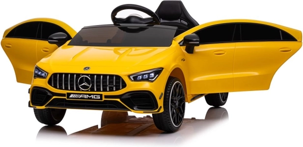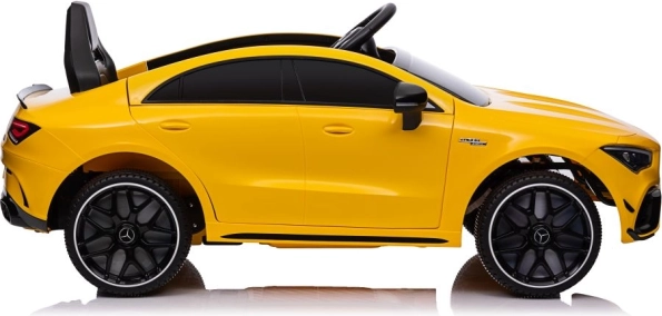 Licencované elektrické auto MERCEDES CLA 45 S AMG poteší každého malého fanúšika športových vozidiel. Žlté prevedenie, verné logo AMG a realistické prvky ako svetlá, volant a palubné prvky dotvárajú pravý zážitok z jazdy. Robustné plastové spracovanie a pohodlné sedadlo zaistia komfort aj pri dlhšej vychádzke.
