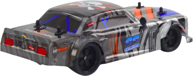 Toto sivé RC športové auto je navrhnuté pre dynamickú jazdu a jednoduché ovládanie. Vďaka ergonomickému pištoľovému ovládaču s volantom a frekvencii 2,4 GHz reaguje model rýchlo a presne, takže si ho užijú začiatočníci aj pokročilí. Detailné spracovanie a pretekárska grafika z neho robia atraktívny model do každej zbierky.