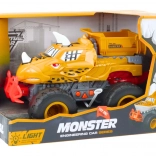 Autíčko je navrhnuté ako dinosaurus so zubami a rohmi, čím pritiahne pozornosť každého dieťaťa.