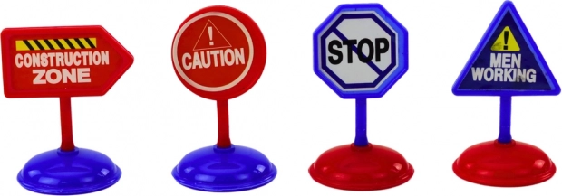 Balenie obsahuje 4 edukačné dopravné značky, ktoré simulujú prostredie staveniska a učia dopravnú bezpečnosť.