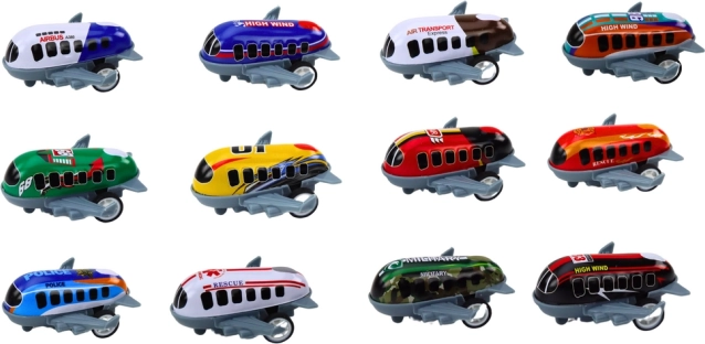 Užite si hodiny kreativity a zábavy s touto sadou 12 hračiek v tvare lietadiel. Každý model má pohon a kolieska pre hru na rolovanie. Farebné lietadlá s popismi ako „High Wind“ a „Air Transport“ inšpirujú detskú fantáziu.