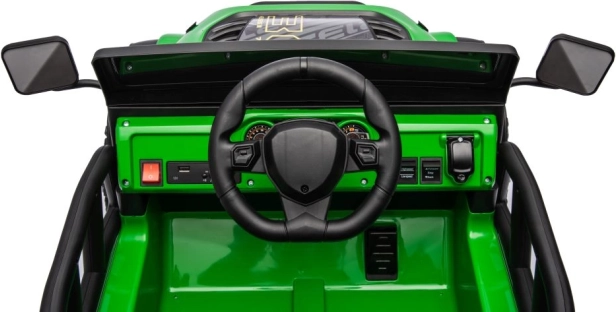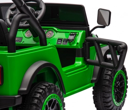 Naše zelené detské auto na batérie je navrhnuté tak, aby prinieslo maximálnu zábavu a zároveň posilnilo kreatívnu hru. Toto autíčko napodobňujúce terénne vozidlo disponuje realistickými detailmi, ako sú veľké kolesá pre rôzne terény, robustný body s bezpečnostnými zrkadlami. Vyrobené prevažne z odolného plastu, toto autíčko je stvorené pre vonkajšie hry.