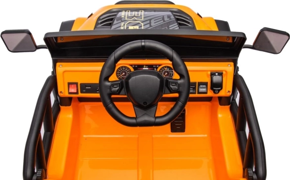 Vychutnajte si skvelú jazdu s týmto oranžovým detským autom na akumulátor. Vďaka detailnému prevedeniu a bezpečným prvkom je perfektnou voľbou pre zábavné a bezpečné hranie vonku.