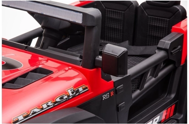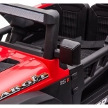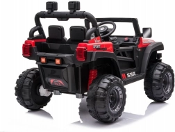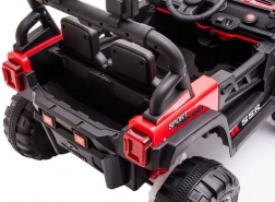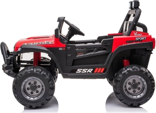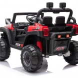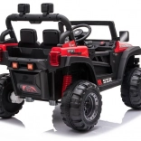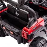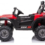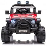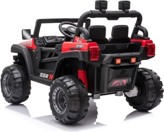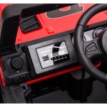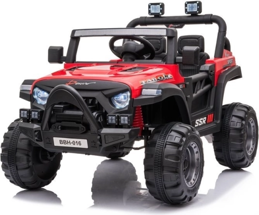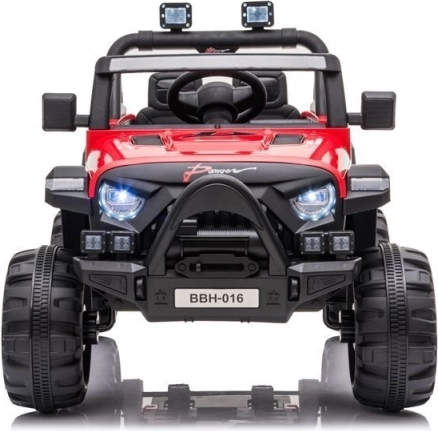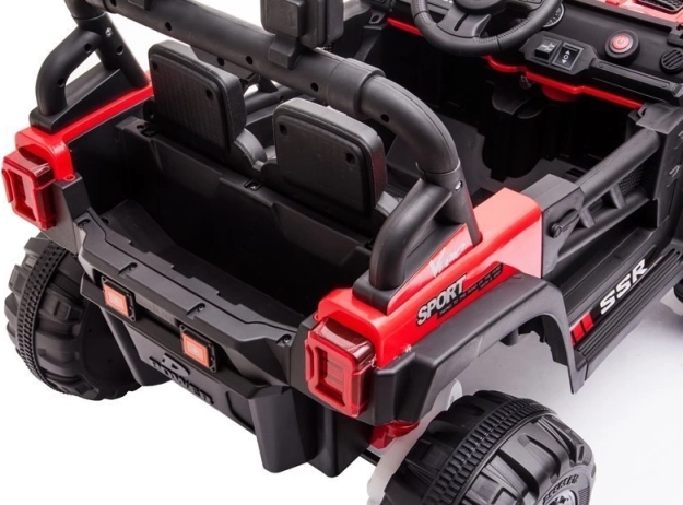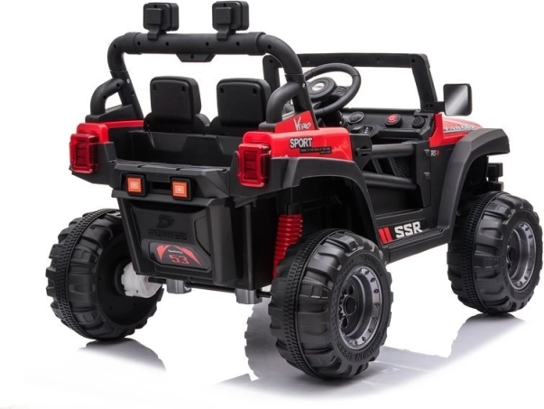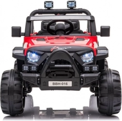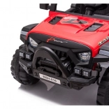Červené akumulátorové autíčko so športovo-terénnym dizajnom je skvelé na dobrodružnú jazdu. Robustná konštrukcia, výrazný predný nárazník a realistické detaily prinášajú autentický zážitok z riadenia. Veľké kolesá s hlbokým dezénom si poradia s nerovnosťami a predné svetlá dodajú hre realistickosť.