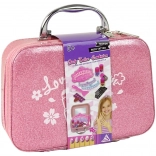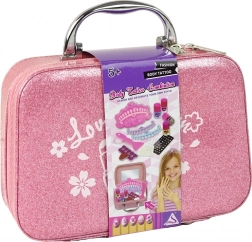 Objavte kúzelnú sadu pre malé stylistky – kompaktný ružový trblietavý kufrík plný doplnkov na nechty. Vďaka ľahko ovládateľnému zipsu, pevnej rukoväti a zrkadielku vo vnútri si deti môžu bezpečne a pohodlne vytvárať svoje prvé nechtové kreácie kdekoľvek. Set zahŕňa 4 farebné laky, razítkovaciu doštičku, nálepky a kamienky, oddeľovače prstov a ďalšie pomôcky na kreatívne zdobenie nechtov.